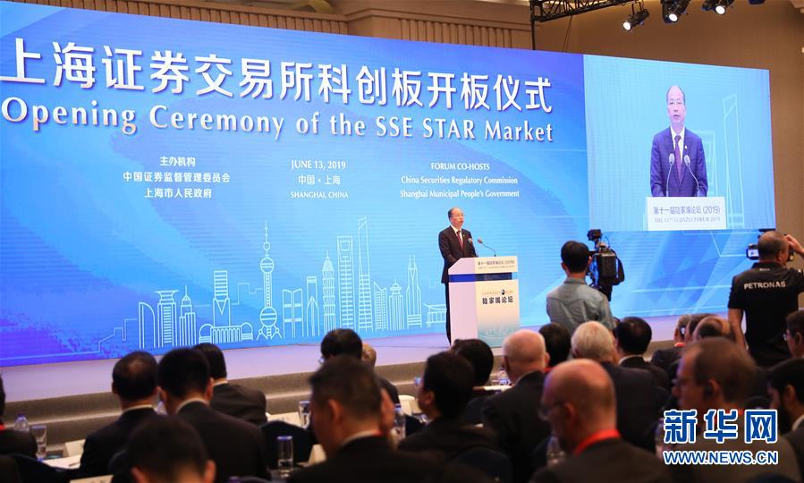6月13日,上海證券交易所科創(chuàng)板開(kāi)板儀式在陸家嘴論壇上舉行。這是中國(guó)證監(jiān)會(huì)主席易會(huì)滿(mǎn)在開(kāi)板儀式上致辭。新華社記者方喆攝