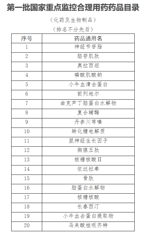 首批重點(diǎn)監(jiān)控藥物目錄名單出爐,20種藥品入選