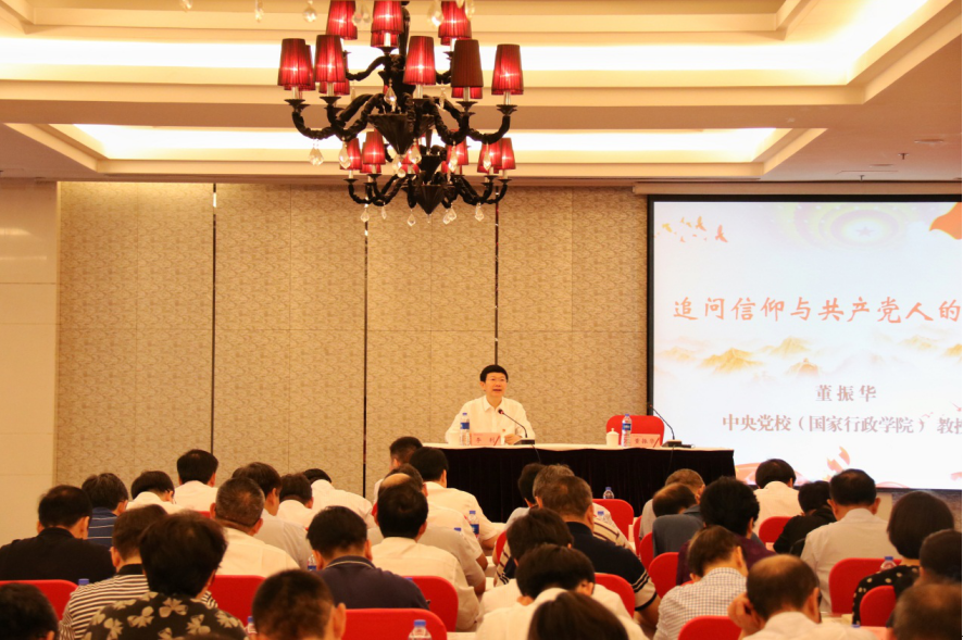 中央黨校董振華教授以《追問信仰與共產(chǎn)黨人的初心》為題,從信仰的本質(zhì)追問、人為什么要有信仰,以及共產(chǎn)黨人的信仰三個方面,詳細解讀了共產(chǎn)黨人的信仰與初心的本質(zhì)與內(nèi)涵,為讀書班講授了第一課。