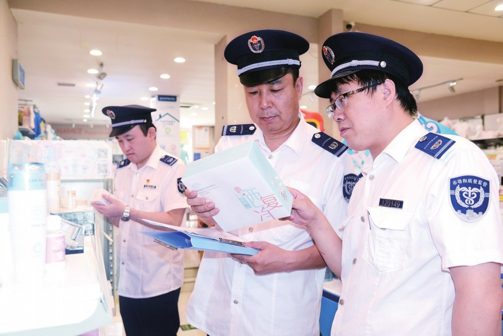 圖為執(zhí)法人員對(duì)一家母嬰產(chǎn)品經(jīng)營(yíng)單位銷(xiāo)售的孕產(chǎn)婦和嬰幼兒專(zhuān)用化妝品進(jìn)行檢查。董寶栓 攝