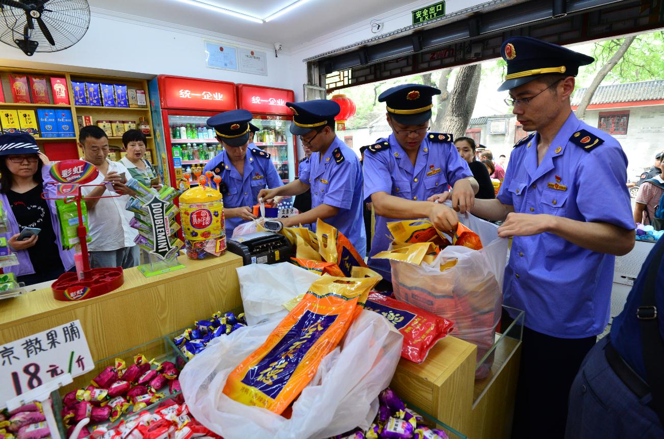 圖為北京市東城區(qū)市場監(jiān)管局工作人員開展專項執(zhí)法檢查。圖片由東城區(qū)市場監(jiān)督管理局提供