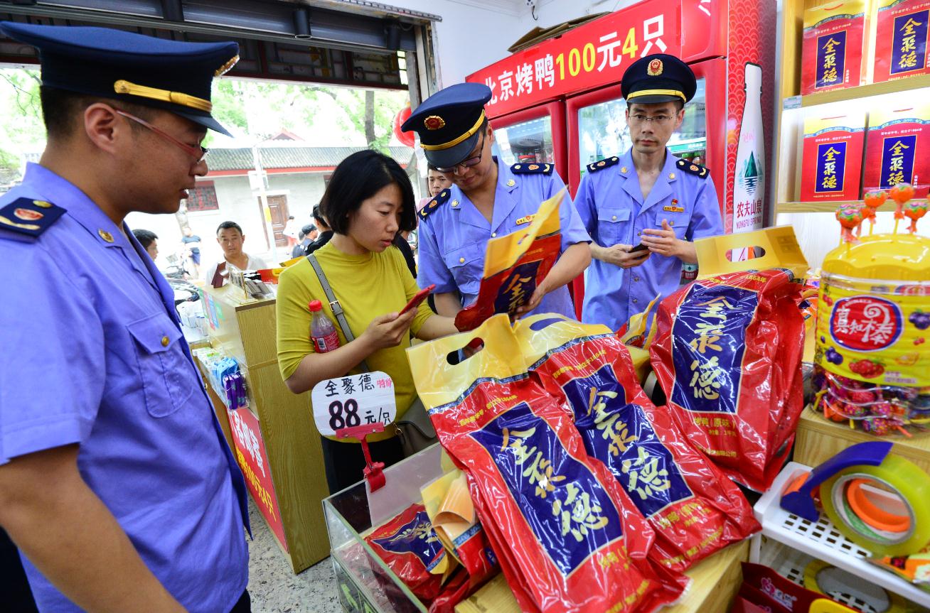 據(jù)東城區(qū)市場監(jiān)管局朱學(xué)理介紹,隨著暑期旅游旺季的到來,北京迎來了大批來自世界各地的游客,地方特色的“全聚德”烤鴨也成為熱銷食品。由于南北池子地區(qū)緊鄰故宮,每天都有大量的游客過往。在經(jīng)濟利益的驅(qū)使之下,一些心存僥幸的不法商戶涉嫌違法銷售侵權(quán)商品,嚴(yán)重擾亂了市場經(jīng)營秩序,侵害了消費者合法權(quán)益。