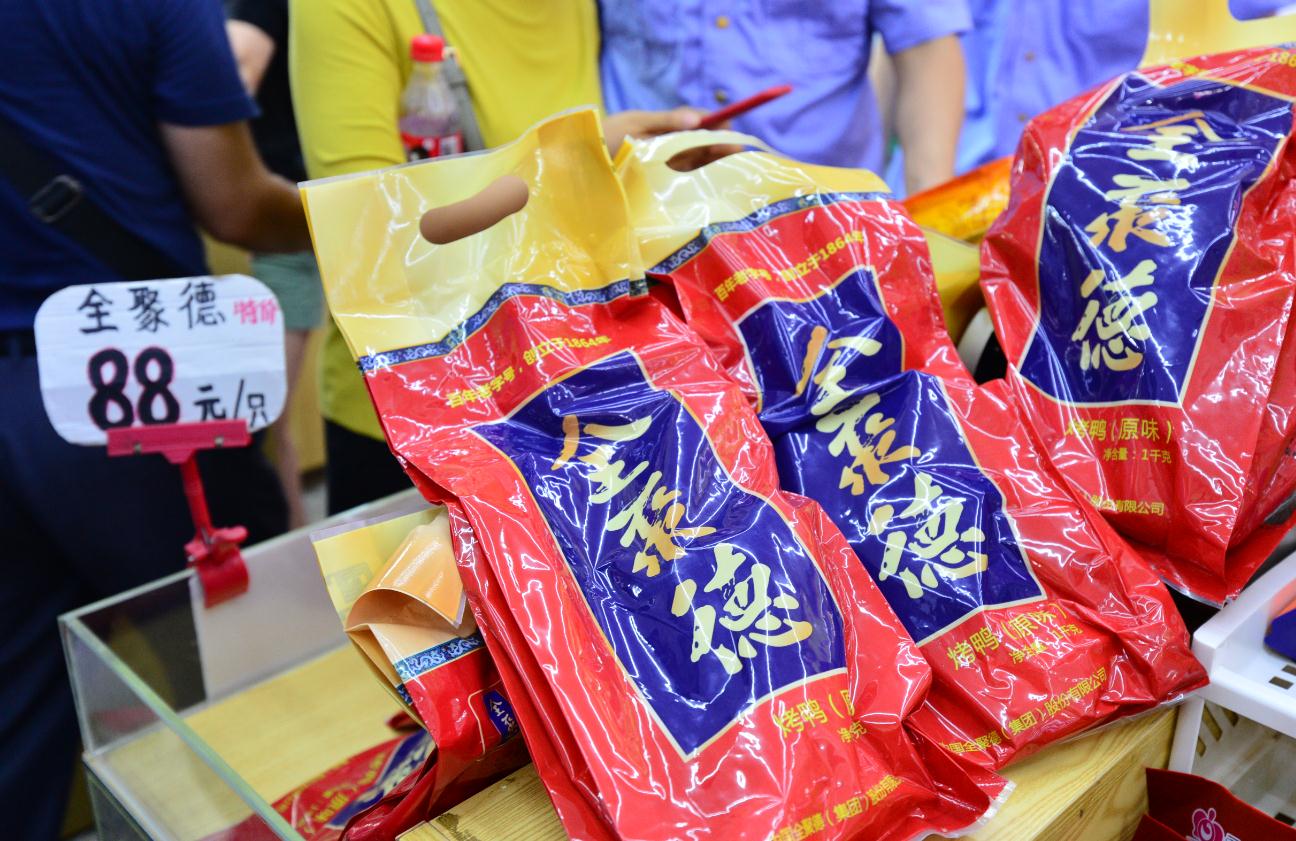 三是以假亂真,以次充好,部分商家在其貨架上擺放正品的“全聚德”烤鴨,待消費者付款后,以給消費者最新鮮的、包裝更好的為由,換成柜臺底下存放的假冒烤鴨出售;
