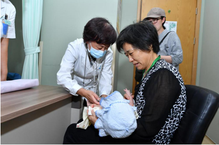 北京兒童醫(yī)院主任醫(yī)師史學(xué)在為小患者檢查。