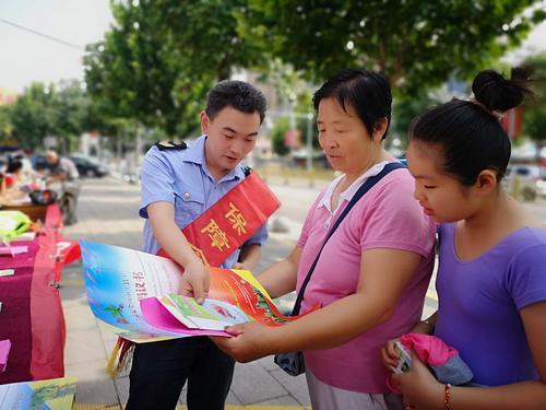 圖為7月17日,晉中市祁縣市場(chǎng)監(jiān)管局執(zhí)法人員向社區(qū)居民講解食品安全風(fēng)險(xiǎn),發(fā)布夏季食品安全警示。攝/李平林 張瑾