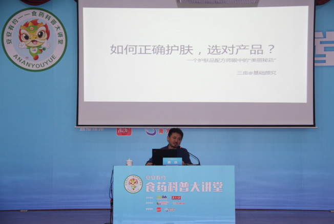 11月30日,廣東省藥品監(jiān)督管理局主辦的第二十一期“安安有約—食藥科普大講堂活動”在廣州舉行。此次活動邀請清華大學(xué)化工博士黃焱(網(wǎng)名:三畝大叔)作題為《如何正確護(hù)膚,選對化妝品?你不知道的“美麗秘籍”》的專題講座,現(xiàn)場與21個(gè)地級市局視頻連接進(jìn)行互動。