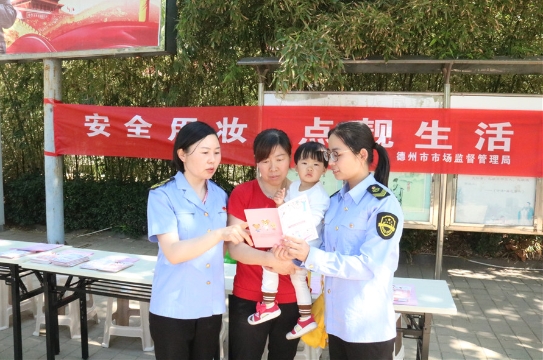 5月22日,山東省德州市德城區(qū)市場(chǎng)監(jiān)督管理局開(kāi)展化妝品安全科普進(jìn)社區(qū)活動(dòng),現(xiàn)場(chǎng)發(fā)放宣傳手冊(cè)200余份,解答咨詢40余人次,重點(diǎn)對(duì)化妝品安全使用知識(shí)、選購(gòu)注意事項(xiàng)等內(nèi)容進(jìn)行宣講,警示消費(fèi)者謹(jǐn)慎對(duì)待化妝品廣告宣傳語(yǔ),增強(qiáng)消費(fèi)者安全用妝意識(shí)。