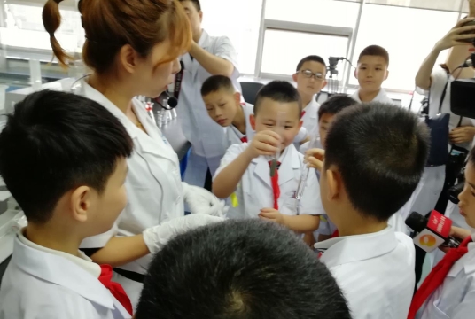 “阿姨,玻尿酸里面有尿嗎?”“大人服用的藥品可以給小朋友服用嗎?”……一群天真的孩子圍在講解員邱婧周圍爭(zhēng)先恐后地問(wèn)個(gè)不停。
